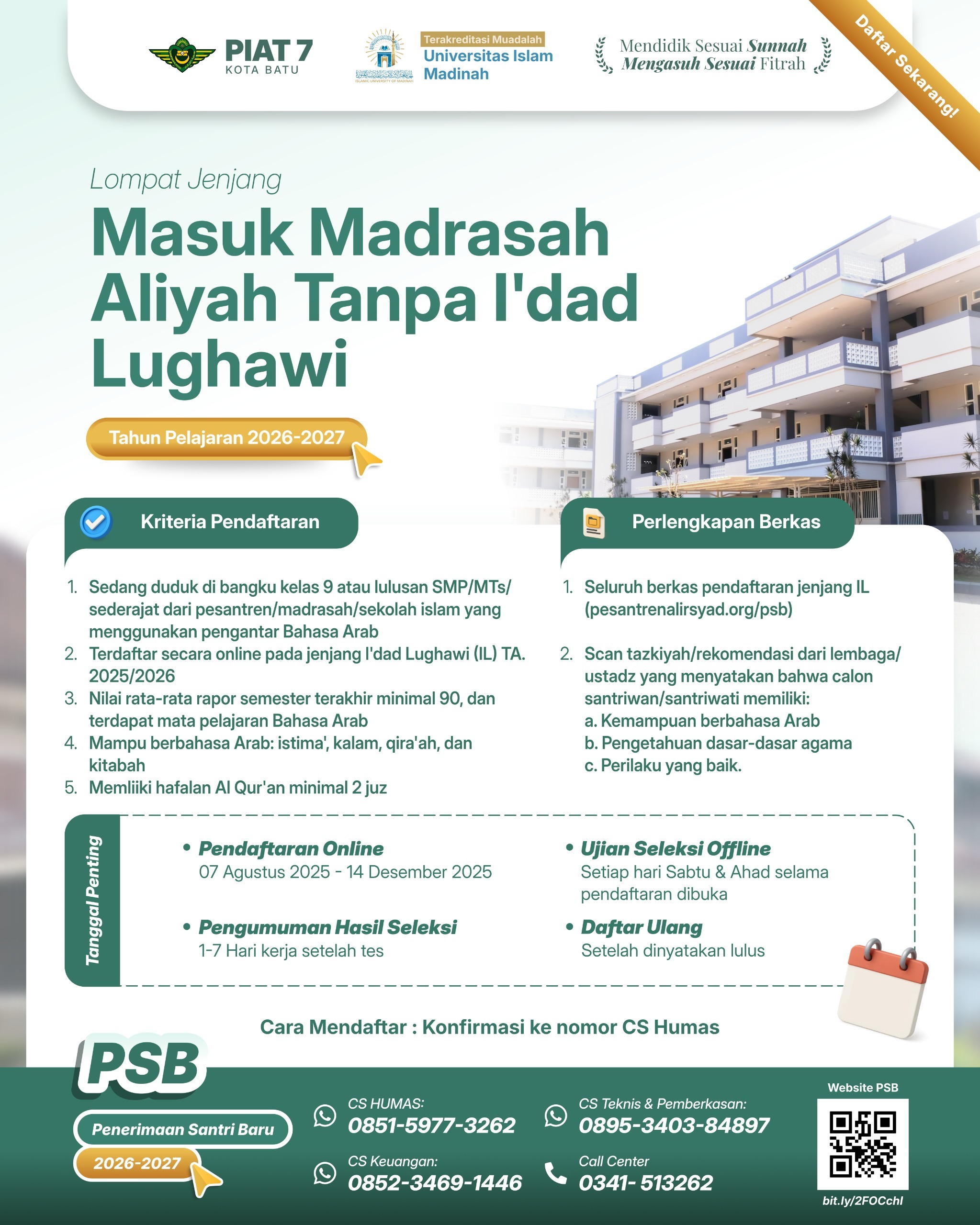Ahlan wa Sahlan di Aplikasi Penerimaan Santri Baru (PSB) Pesantren Islam Al Irsyad Tengaran 7 Kota Batu.